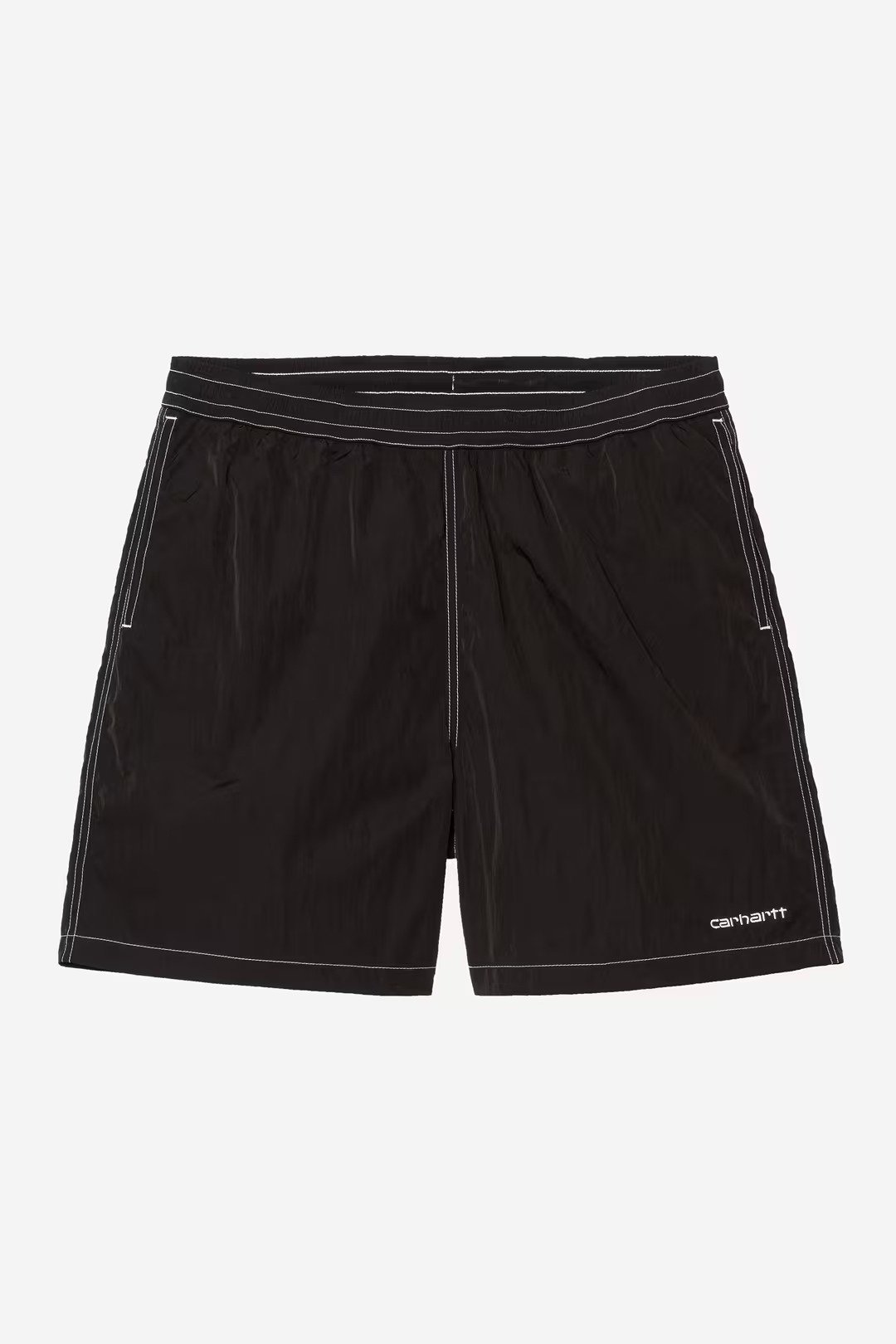 Realizzati in leggero taffetà di nylon impermeabile e impreziositi da cuciture a contrasto appena accennate. Il modello è dotato inoltre di due tasche laterali e di una tasca posteriore con anello portachiavi. Sulla parte posteriore campeggia un’etichetta quadrata in tessuto e sul davanti un ricamo del logo.