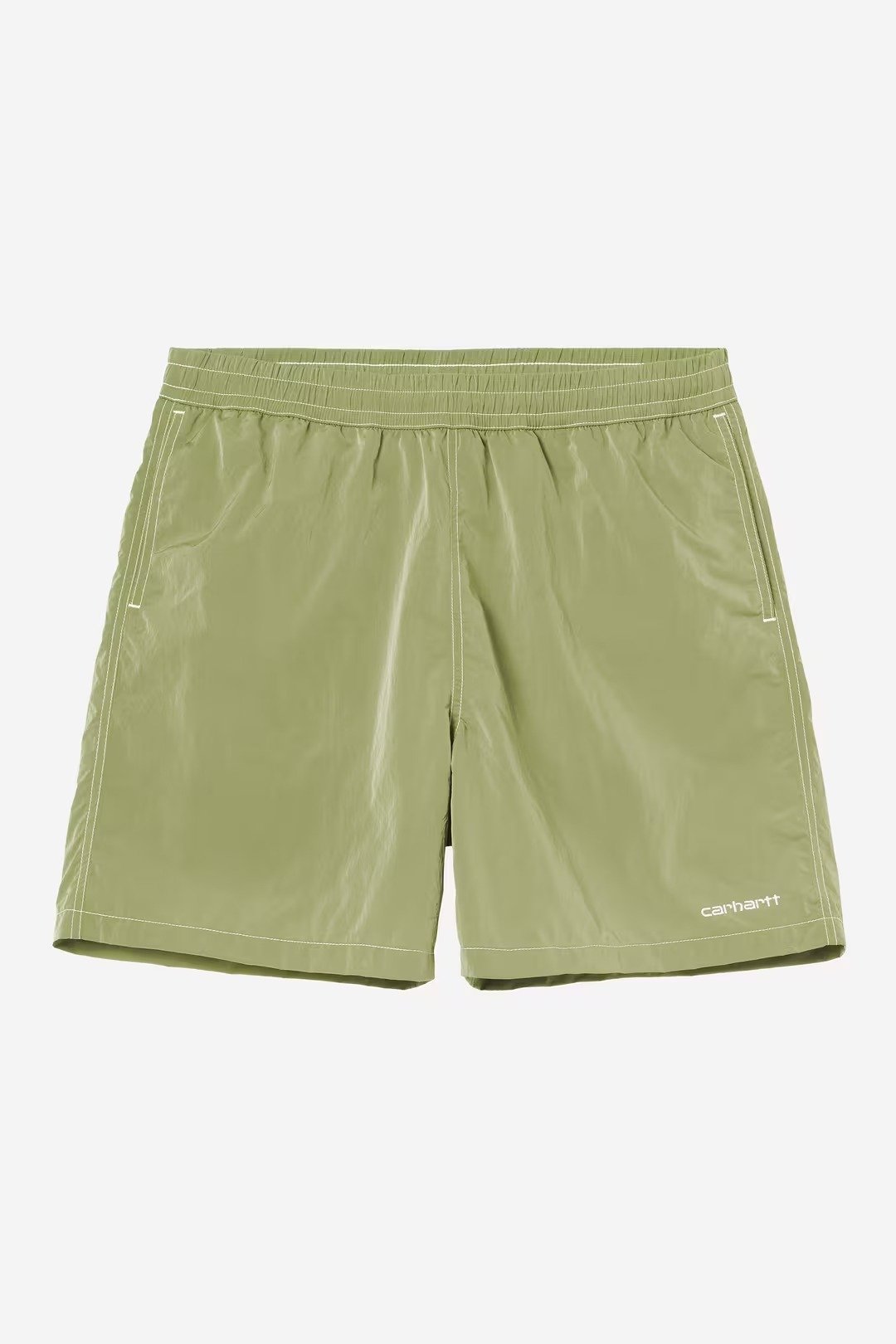 Realizzati in leggero taffetà di nylon impermeabile e impreziositi da cuciture a contrasto appena accennate. Il modello è dotato inoltre di due tasche laterali e di una tasca posteriore con anello portachiavi. Sulla parte posteriore campeggia un’etichetta quadrata in tessuto e sul davanti un ricamo del logo.