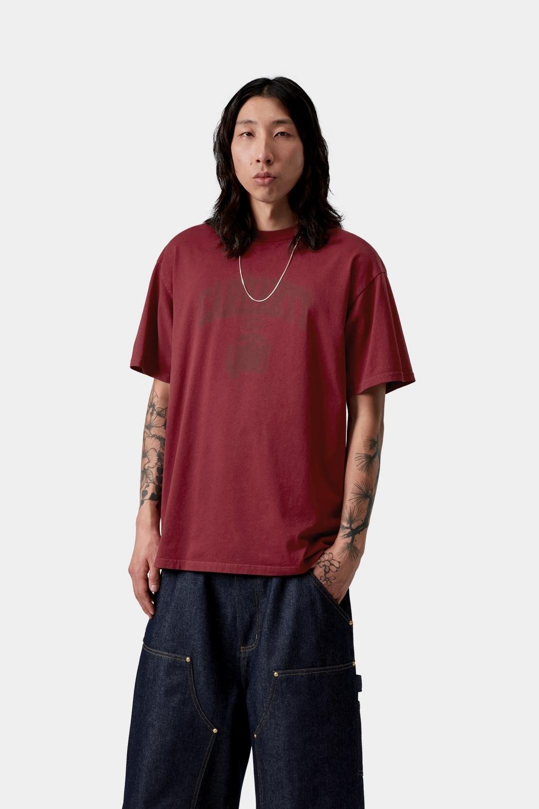 Carhartt Wip Faded Pond Corps Tee Marsala Heavy Stone Wash