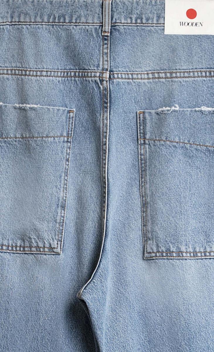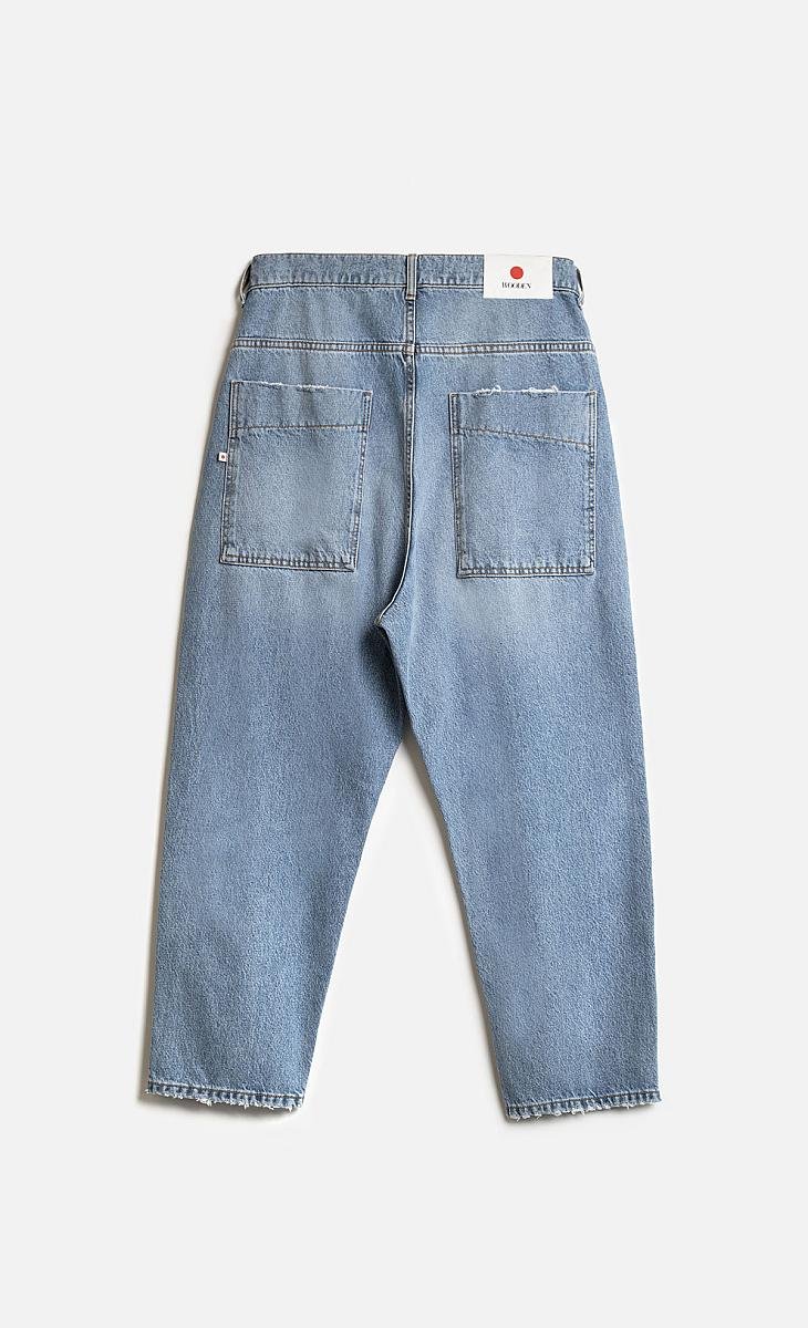 Cavallo pronunciato, lunghezza della gamba rivisitata per rendere “cropped” il pantalone e tasca posteriore quadrata di ispirazione japanese work jumpsuit.